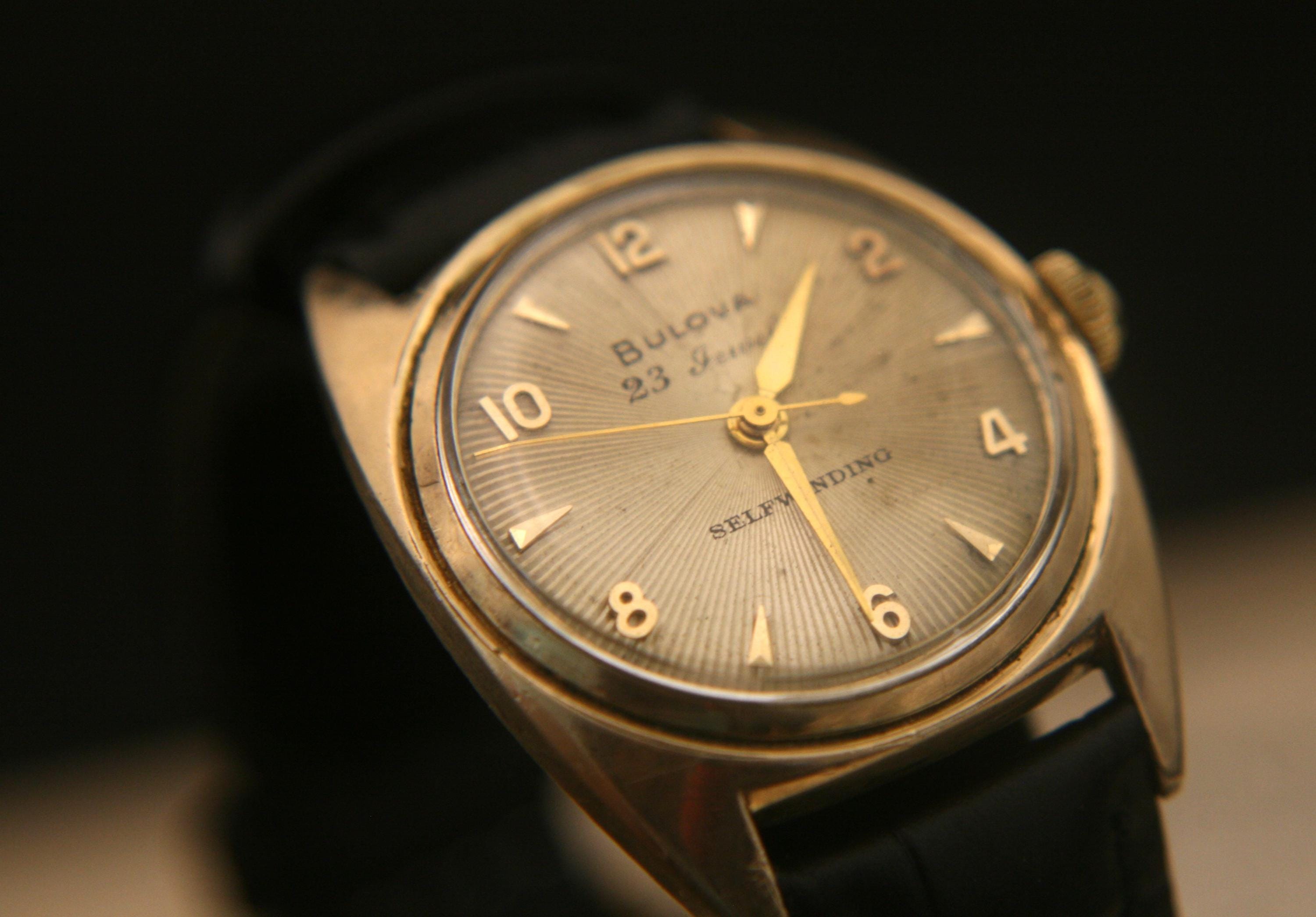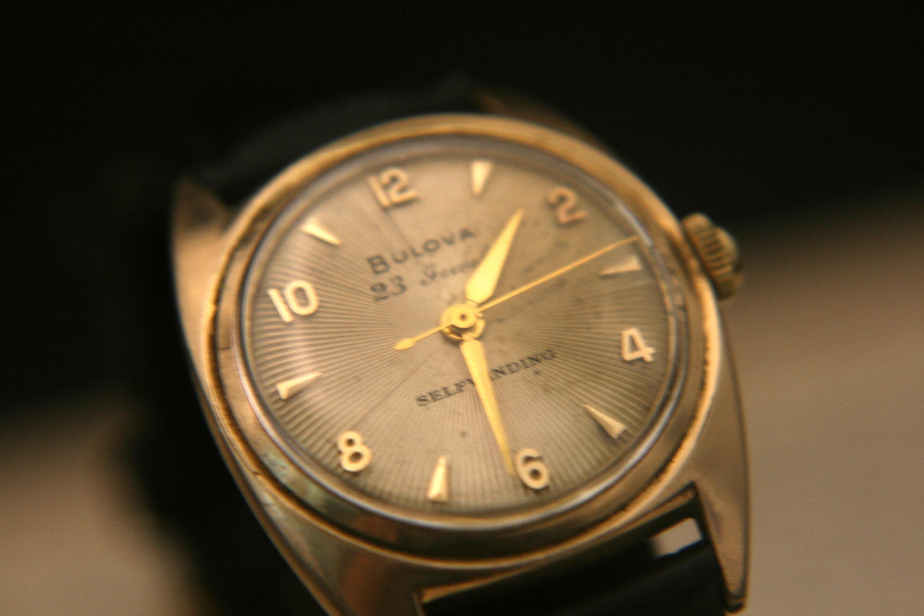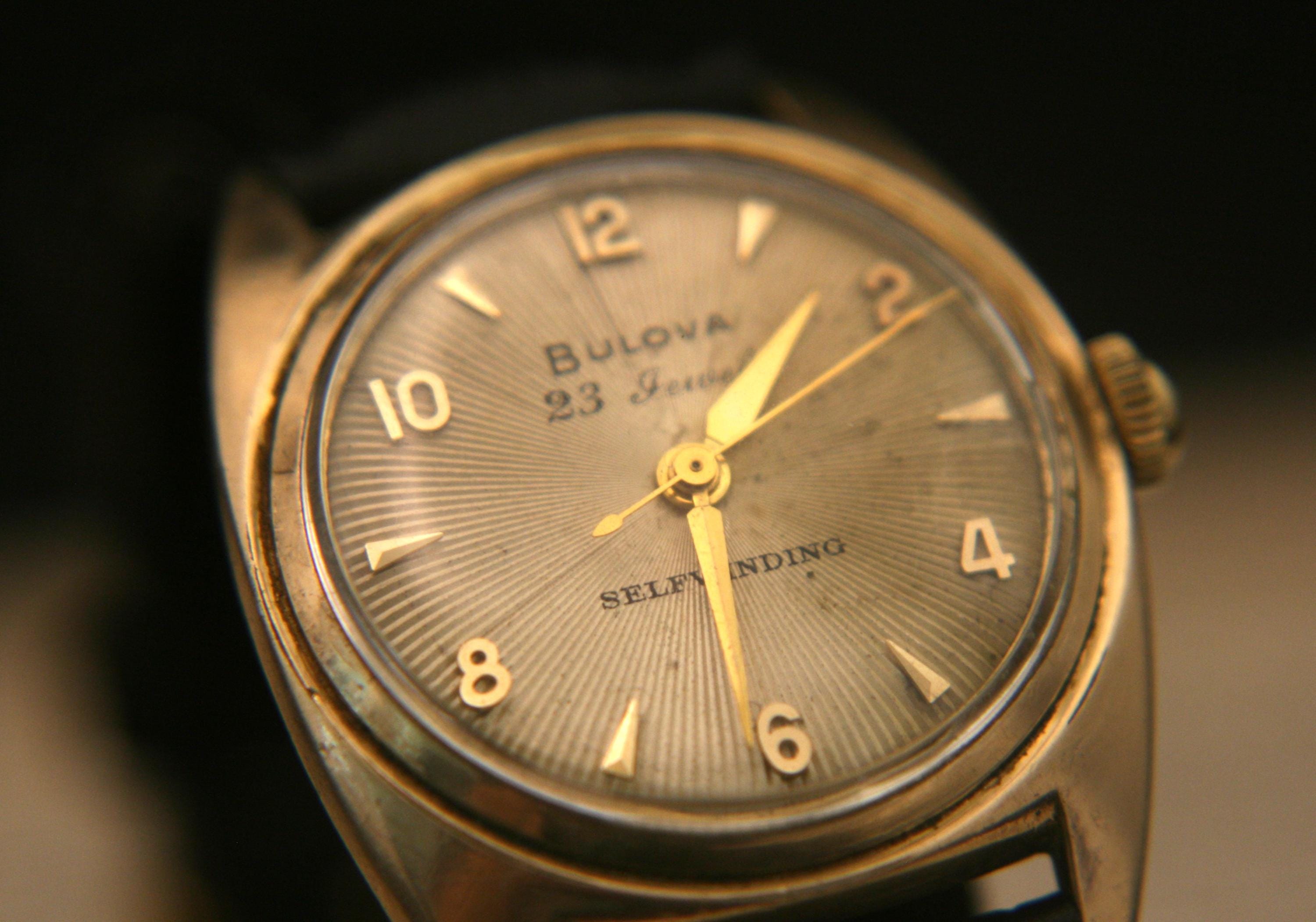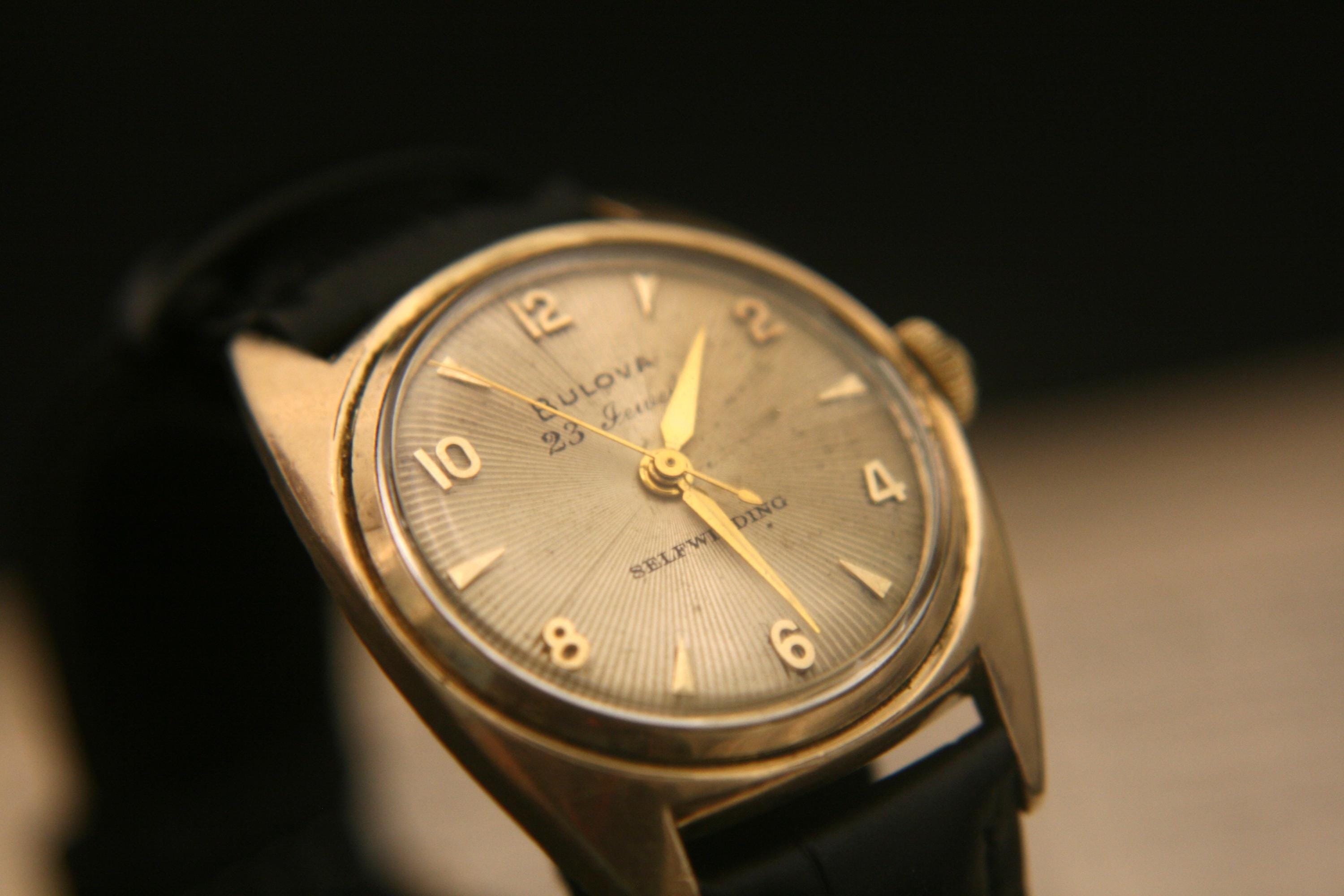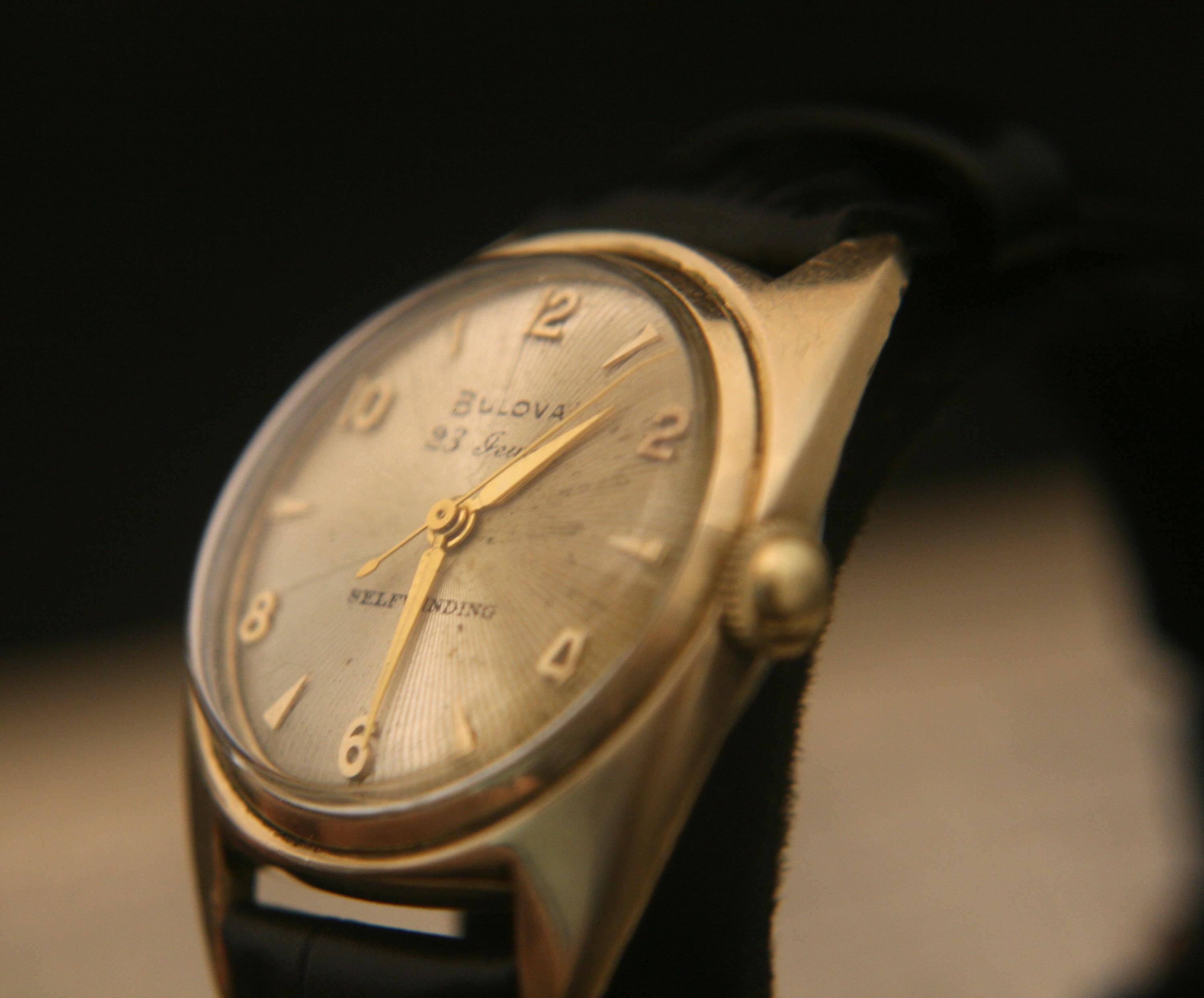 We are delighted to offer this handsome men's vintage 1954 gold American made Bulova 23 jewel, self winding wristwatch.