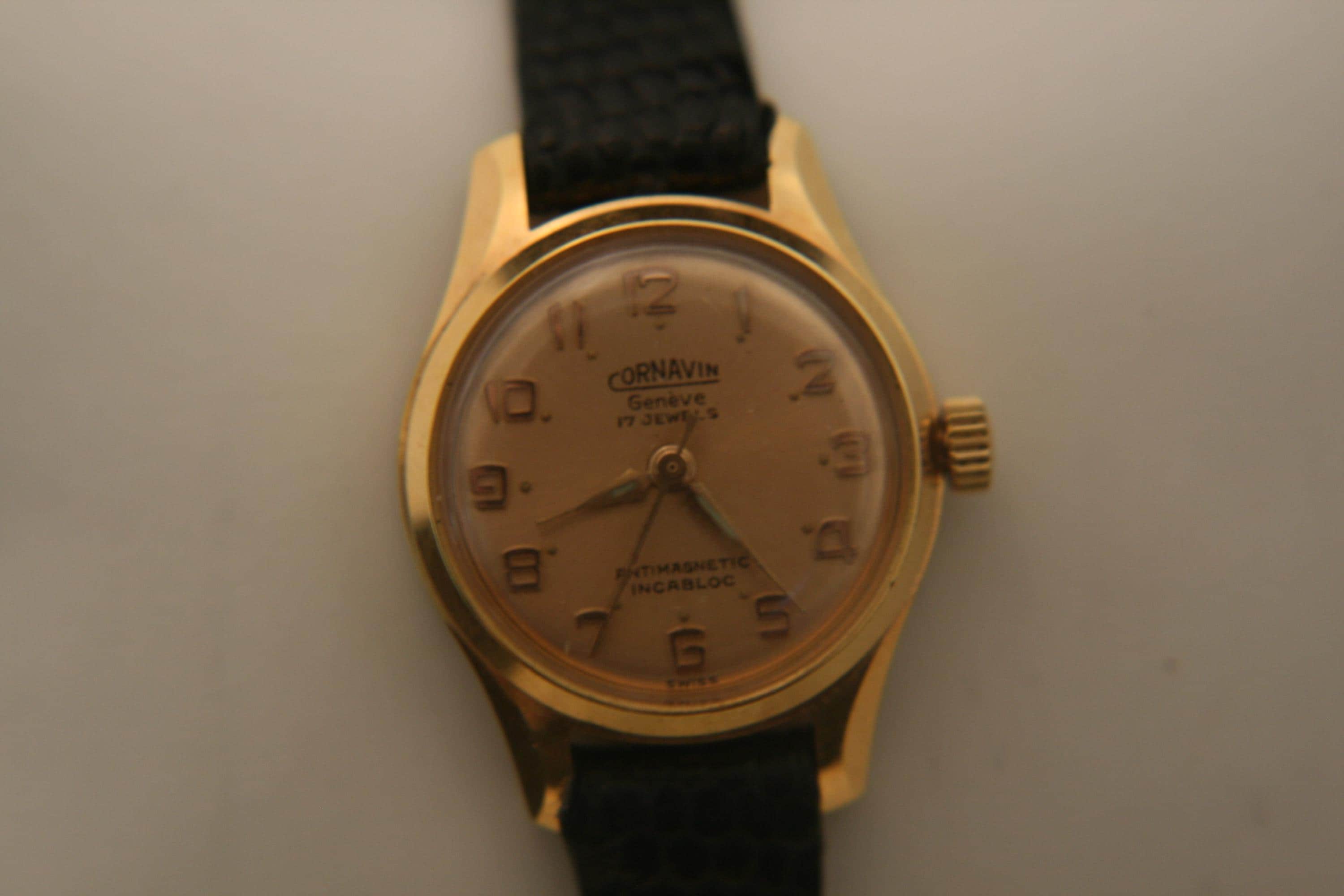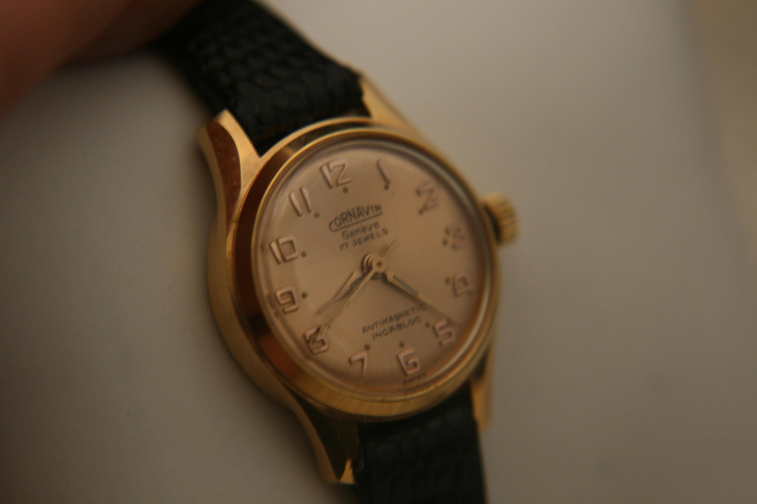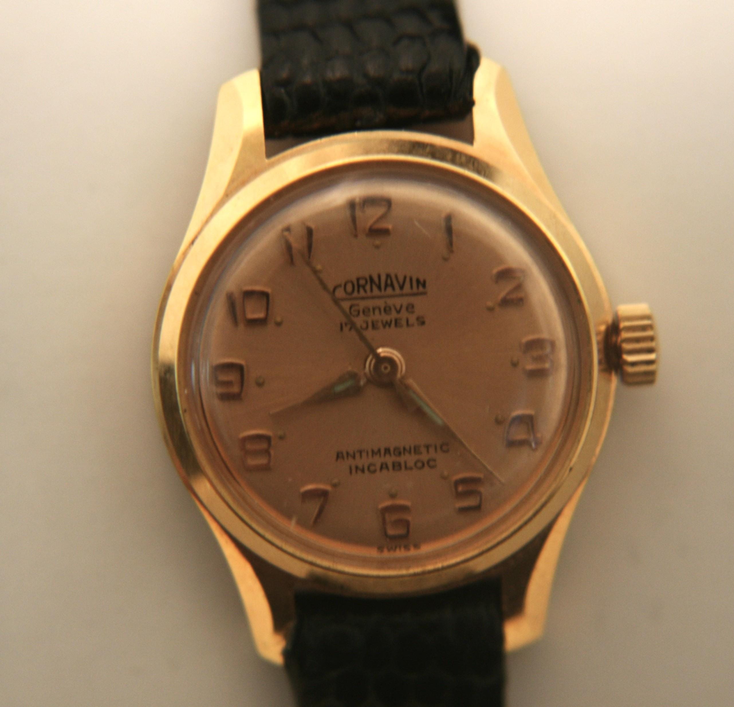 Manufactured in Switzerland by the Cornivan Geneve, this well-preserved timepiece features a 10K rolled gold plate case measures 22.7 mm / 0/.89" in diameter, excluding crown and lugs.
