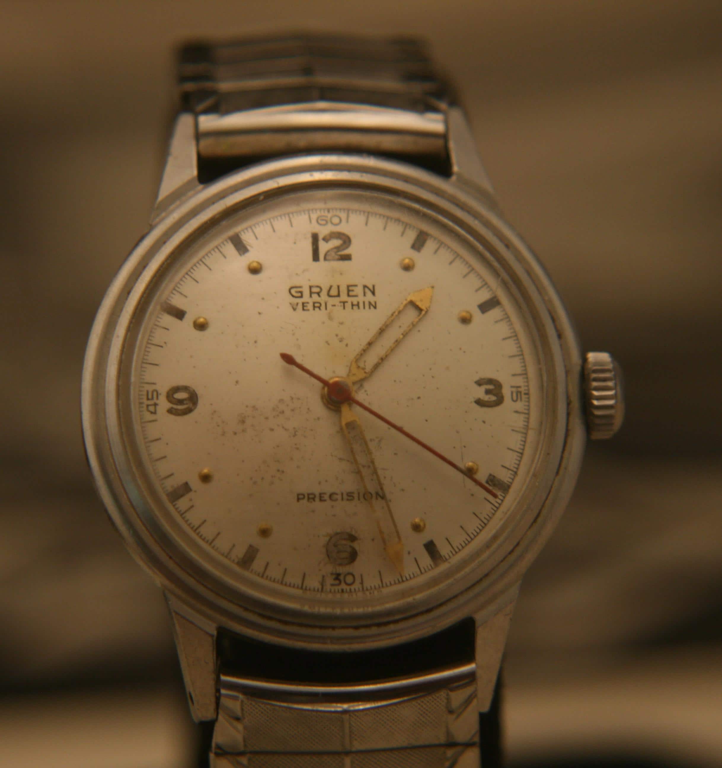 This WWII era Gruen Precision, Veri-Thin military wristwatch is in remarkable condition considering its about 80 years of service.