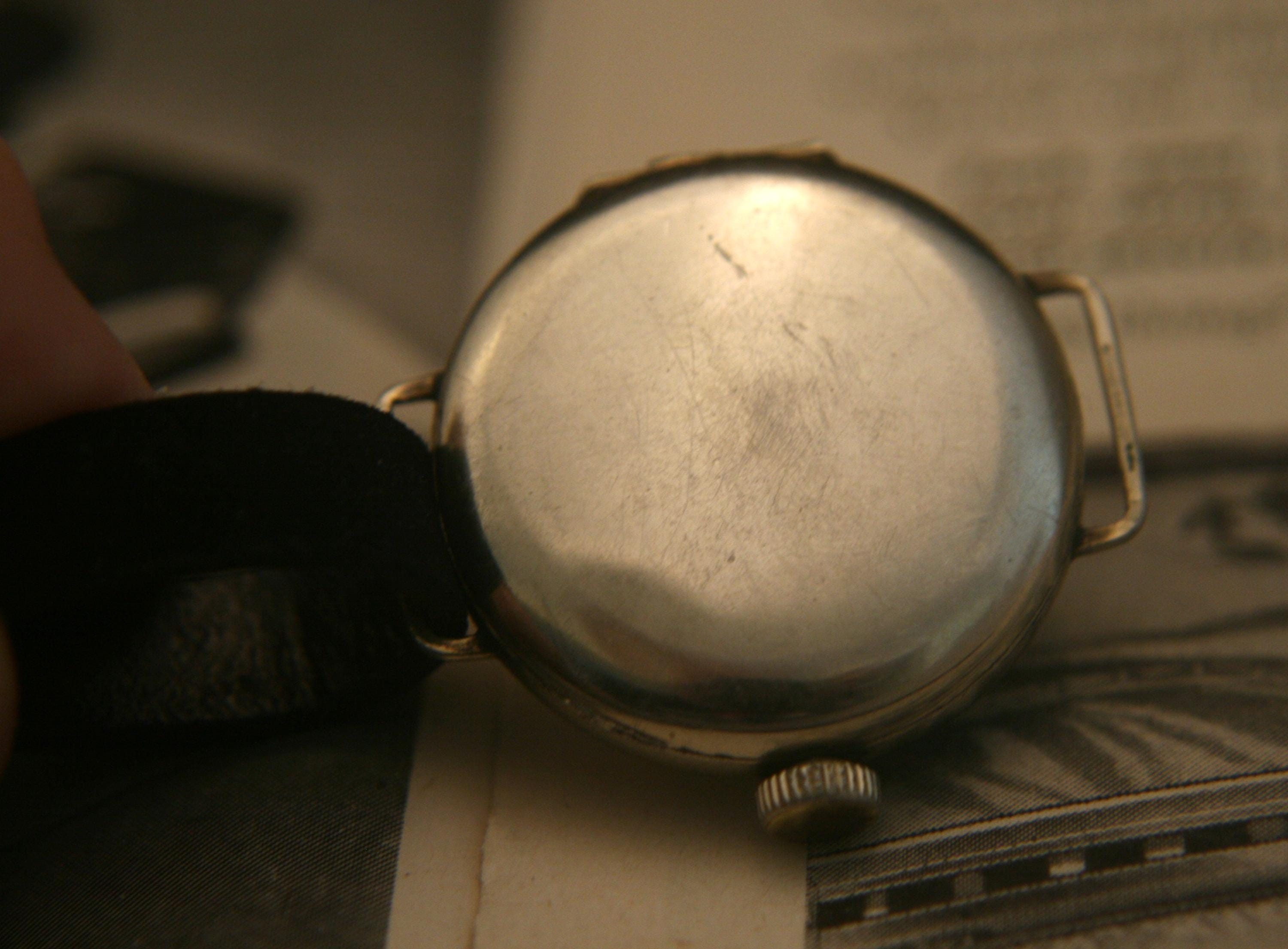 PLEASE NOTE: The hinge on the back of the watch is detached and should be resoldered or, as I have done, as the watch requires a 1-piece strap using the fixed lugs, when the band is installed, it will hold the back firmly in place.