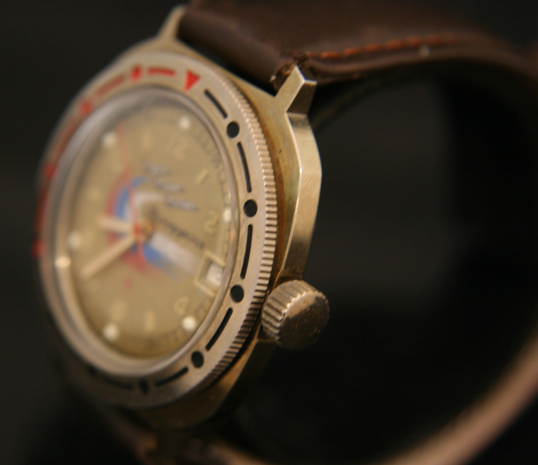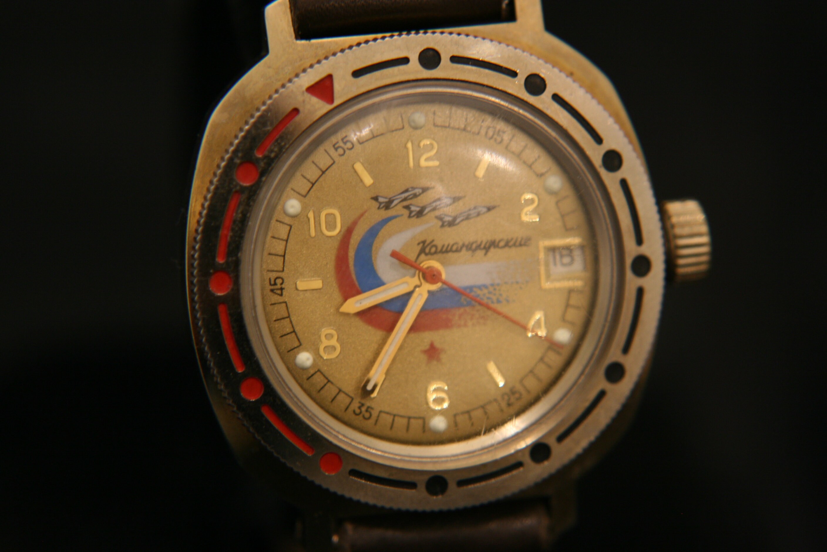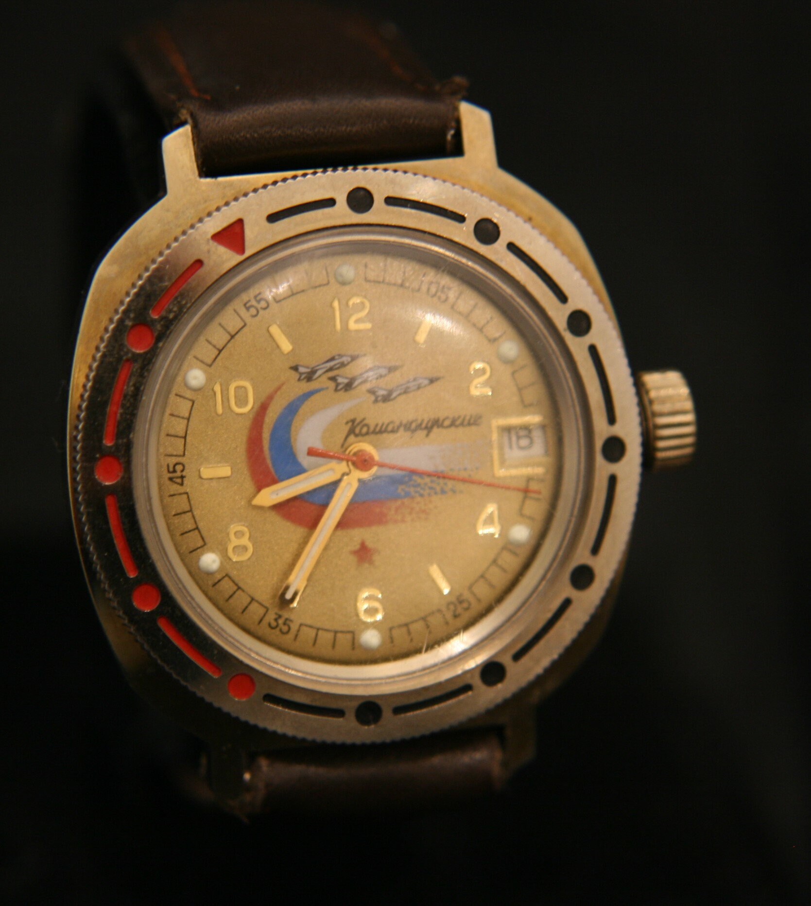 The company was appointed an official supplier of watches for the Ministry of Defence of the Soviet Union in 1965. This year also marks the creation of the well known Komandirskie("Commander's") watch. The experience gained through development of the army watch led to the Amphibia, a stainless-steel diving watch able to withstand a 200-metre depth (20atm). By 1980, Vostok Watch Makers was producing 4.5 million timepieces per year.