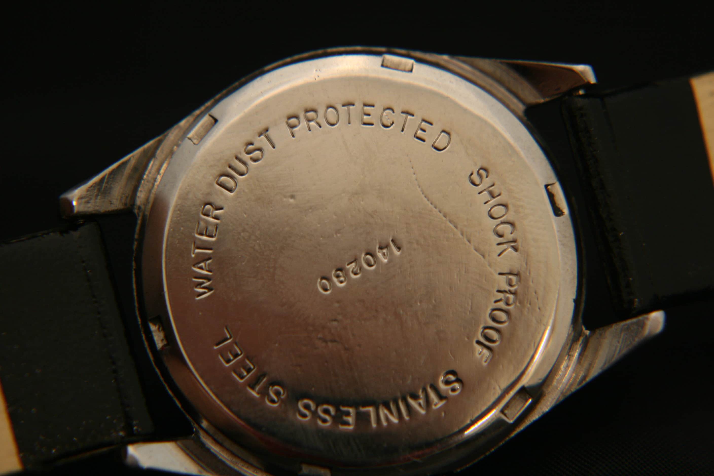 This beautiful timepiece features a screw-down back and has been fitted with a new black, genuine leather, strap with stainless buckle that suits it perfectly.
